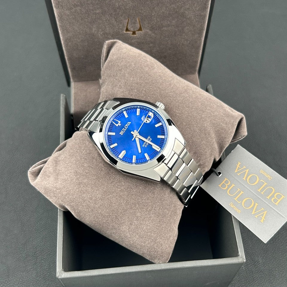 Descubra a sofisticação clássica do Bulova Surveyor Automatic, série 96AB436, uma peça que celebra a herança relojoeira da marca fundada em 1875. Este modelo masculino destaca-se pelo dial azul sunray de intenso brilho, com índices aplicados e ponteiros facetados, além de janela de data às 3 horas com lupa (ciclope) para leitura imediata — um conjunto elegante e versátil para acompanhar tanto o traje casual quanto o social.
